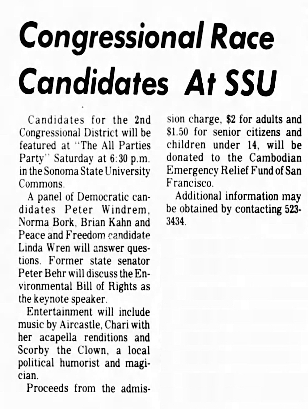 07 - Candidates for Congress - "The All Parties Party" - SSU, The Napa Valley Register, 2/27/1980