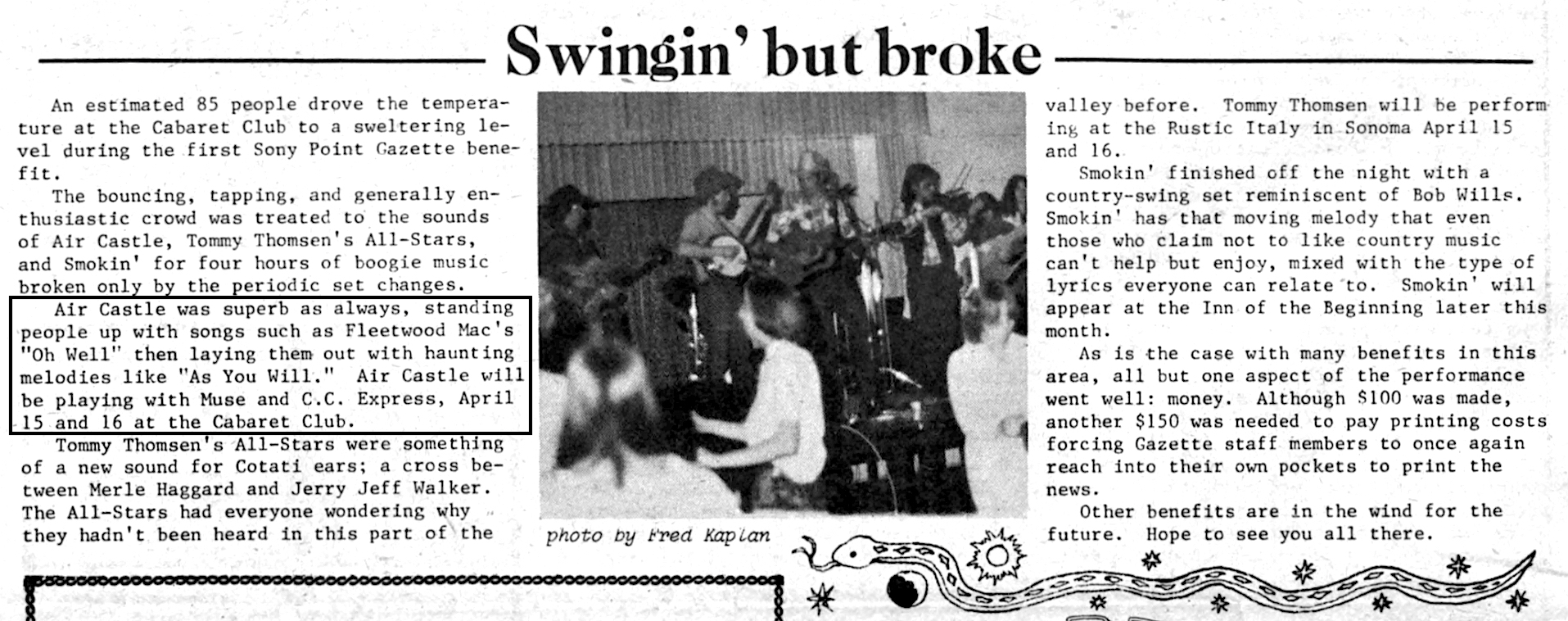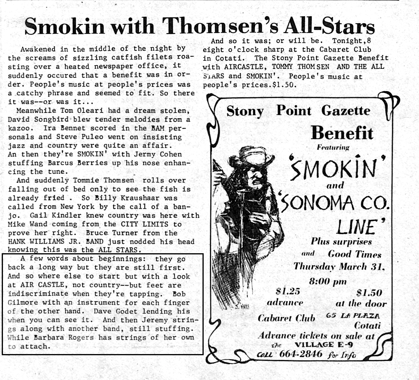 04 - Article - Benefit for The Stony Point Gazette at The Cabaret Club, 3/31/1977