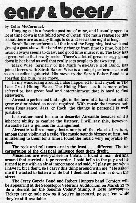 06 - Review of Aircastle at the Last Great Hiding Place, The Oak Leaf, 3/2/1978