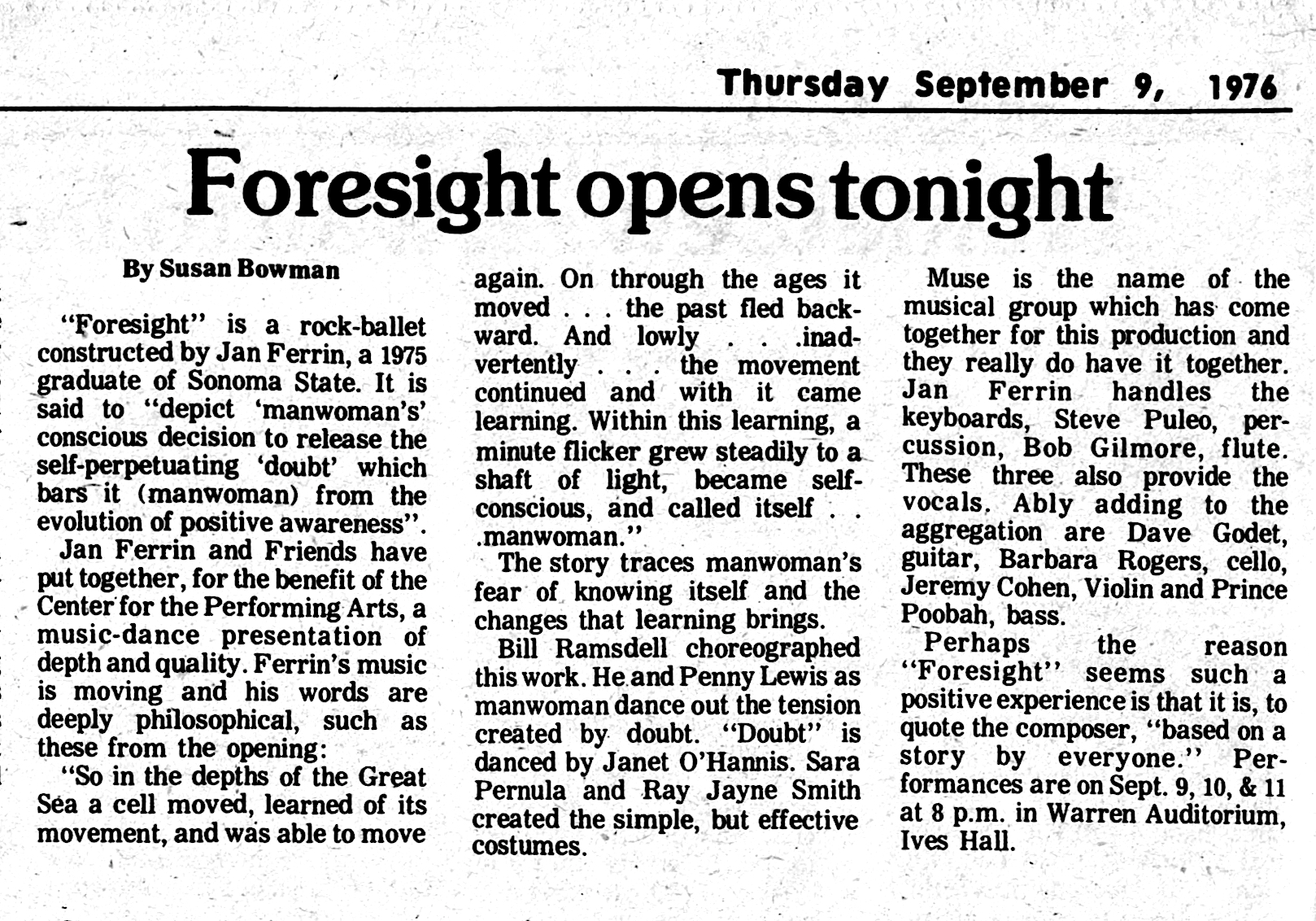 03 - "Foresight Opens Tonight" - SSU, The Morning Glory, 9/9/1976