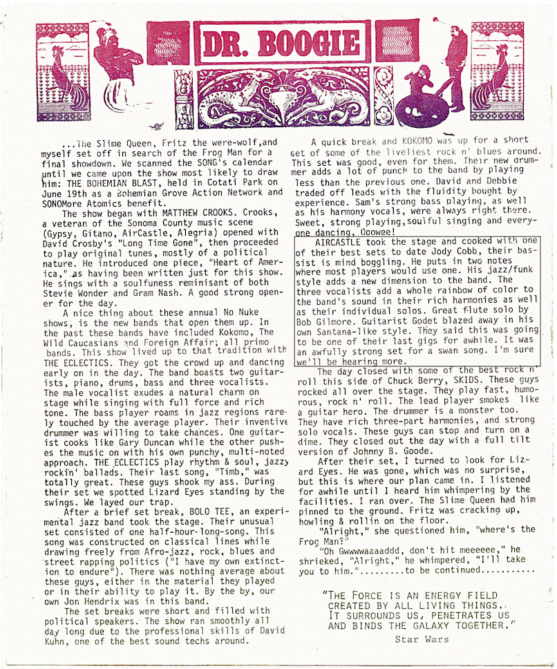 09 - Dr. Boogie's review of the Bohemian Blast anti-nuke concert, Song Magazine, 6/19/1982